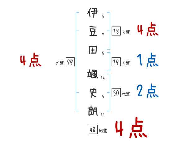 伊豆田颯史朗さんの画数の鑑定結果