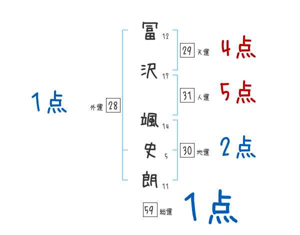 冨沢颯史朗さんの画数の鑑定結果