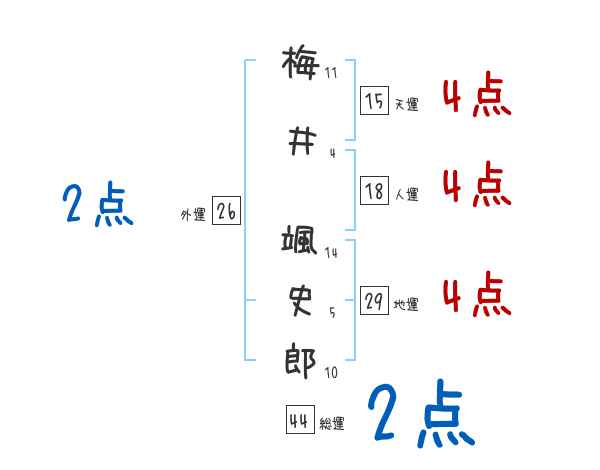 梅井颯史郎さんの画数の鑑定結果