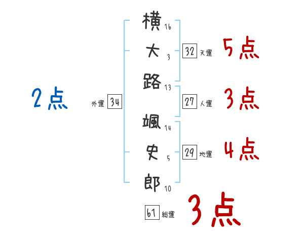 天運![]() | 横大路颯史郎さんの天運は32画の5つ星!柔軟性があり成功する。チャンスが多く金運が良い。 家系が持つ宿命的な運勢を表します。祖先から受け継いだ苗字ですので自分の力が及びません。家柄を象徴します。 |