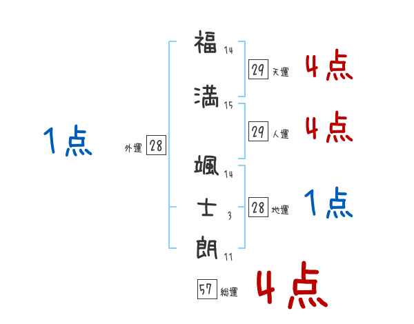 総運![]() | 福満颯士朗さんの総運は57画の4つ星!向上心があり人望がある。地位を得る。 あなたの人生を表す1番重要な運勢です。生涯を通じて影響する総合運となり、主に50歳以降の晩年期に影響を及ぼします。 |