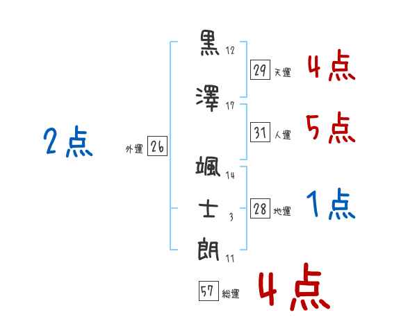 黒澤颯士朗さんの画数の鑑定結果