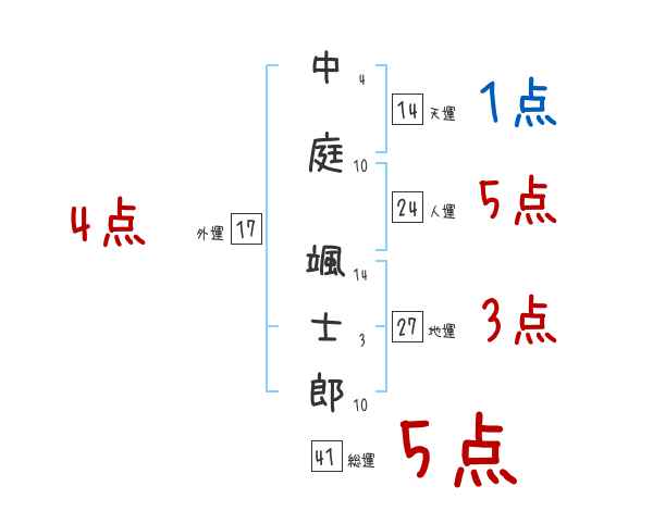 中庭颯士郎さんの画数の鑑定結果