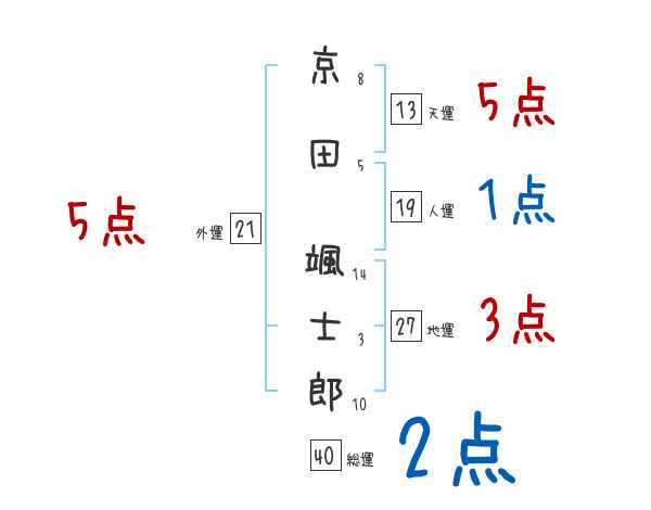 外運![]() | 京田颯士郎さんの外運は21画の5つ星!統率力がある。独立し成功する。名誉を手に入れる。 生活面を象徴する運勢です。外部から受ける影響力を表し、結婚運、家庭運や職場、環境への順応性を表します。 |