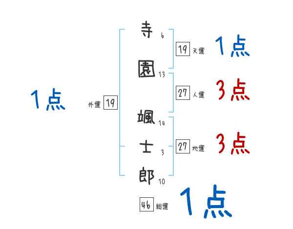 天運![]() | 寺園颯士郎さんの天運は19画の1つ星!優れた才能を持ちますが、協調性が足りないことも。周りの人と協力する事を意識しましょう。 家系が持つ宿命的な運勢を表します。祖先から受け継いだ苗字ですので自分の力が及びません。家柄を象徴します。 |