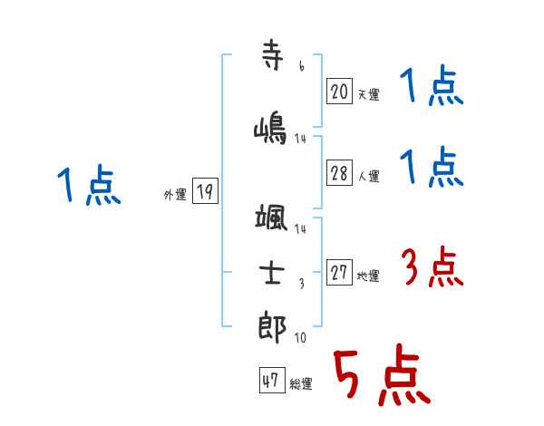 寺嶋颯士郎さんの画数の鑑定結果