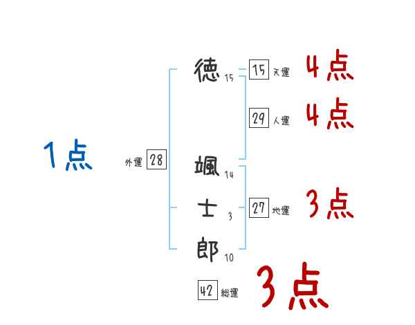 徳颯士郎さんの画数の鑑定結果