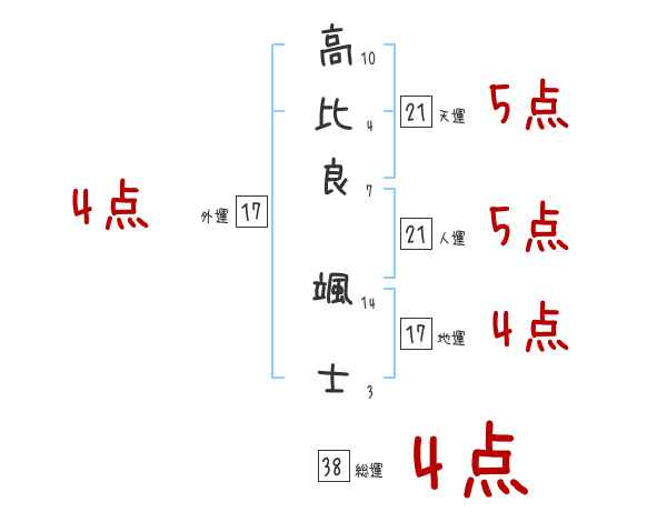 高比良颯士さんの画数の鑑定結果
