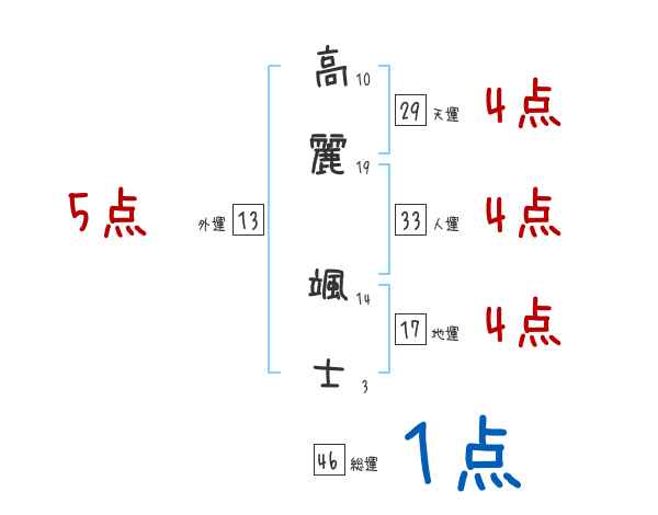 高麗颯士さんの画数の鑑定結果