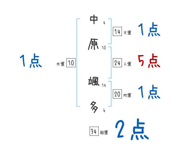 中原颯多さんの画数の鑑定結果