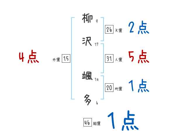 柳沢颯多さんの画数の鑑定結果