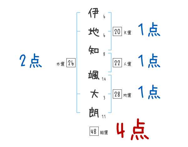 外運![]() | 伊地知颯大朗さんの外運は26画の2つ星!波瀾万丈かも。信頼できる人を大事にしましょう。 生活面を象徴する運勢です。外部から受ける影響力を表し、結婚運、家庭運や職場、環境への順応性を表します。 |