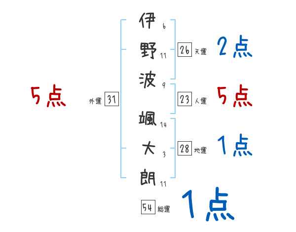 伊野波颯大朗さんの画数の鑑定結果