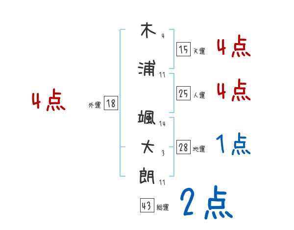 天運![]() | 木浦颯大朗さんの天運は15画の4つ星!人徳があり出世する。順調に物事を進め円満な人生。 家系が持つ宿命的な運勢を表します。祖先から受け継いだ苗字ですので自分の力が及びません。家柄を象徴します。 |
