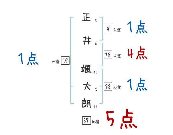 正井颯大朗さんの画数の鑑定結果