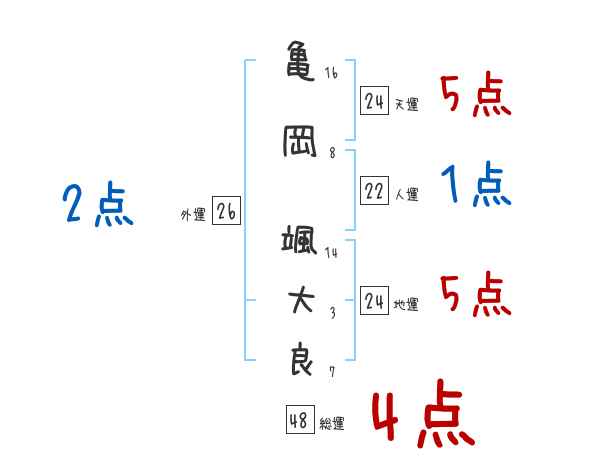 亀岡颯大良さんの画数の鑑定結果