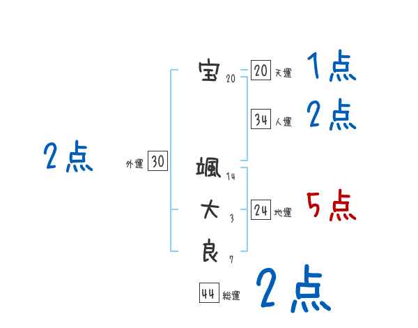 宝颯大良さんの画数の鑑定結果