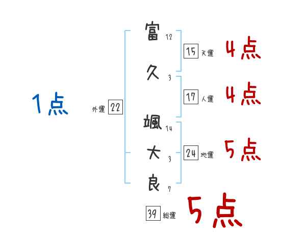 富久颯大良さんの画数の鑑定結果