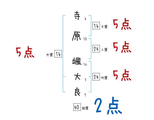 寺原颯大良さんの画数の鑑定結果