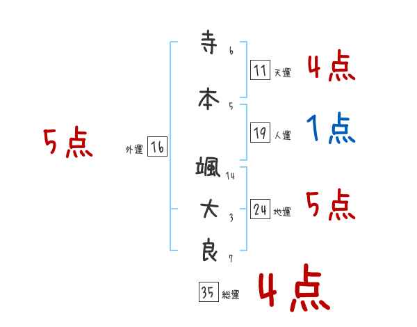 寺本颯大良さんの画数の鑑定結果
