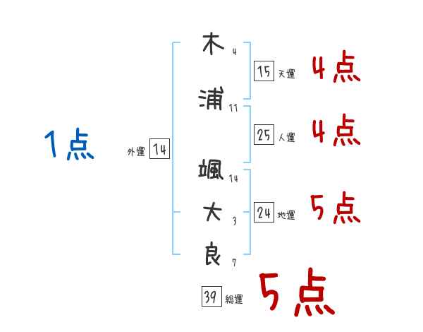 木浦颯大良さんの画数の鑑定結果