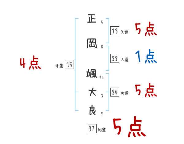 正岡颯大良さんの画数の鑑定結果