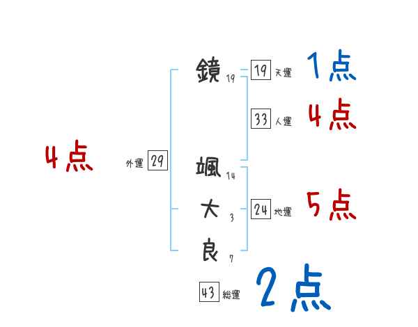 鏡颯大良さんの画数の鑑定結果