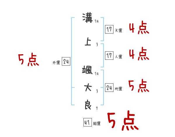 溝上颯大良さんの画数の鑑定結果