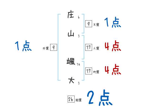 庄山颯大さんの画数の鑑定結果