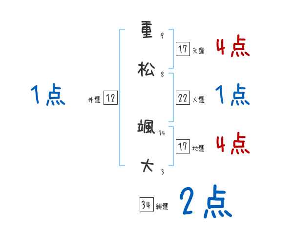 重松颯大さんの画数の鑑定結果