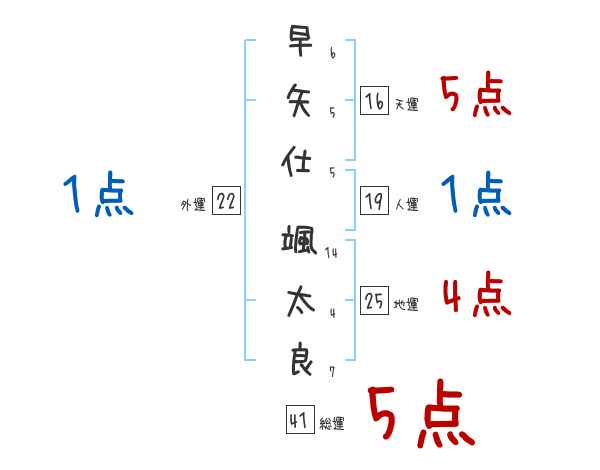 早矢仕颯太良さんの画数の鑑定結果