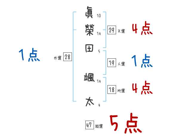 眞榮田颯太さんの画数の鑑定結果
