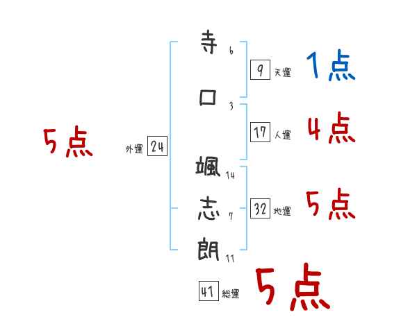 寺口颯志朗さんの画数の鑑定結果
