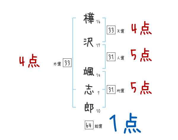 樺沢颯志郎さんの画数の鑑定結果
