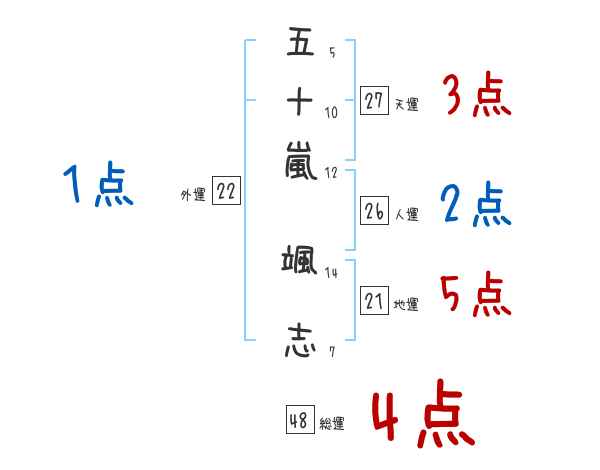 五十嵐颯志さんの画数の鑑定結果