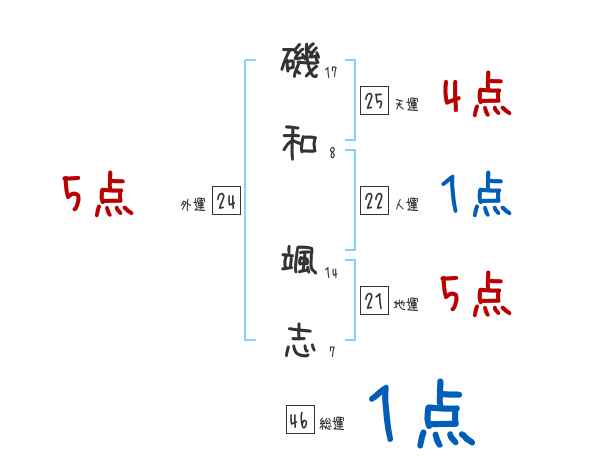 磯和颯志さんの画数の鑑定結果