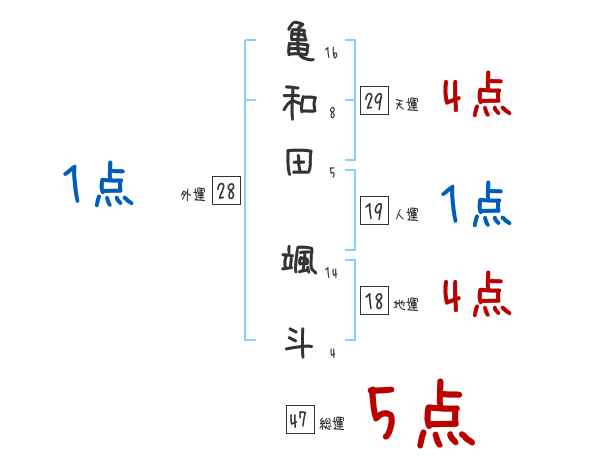 亀和田颯斗さんの画数の鑑定結果