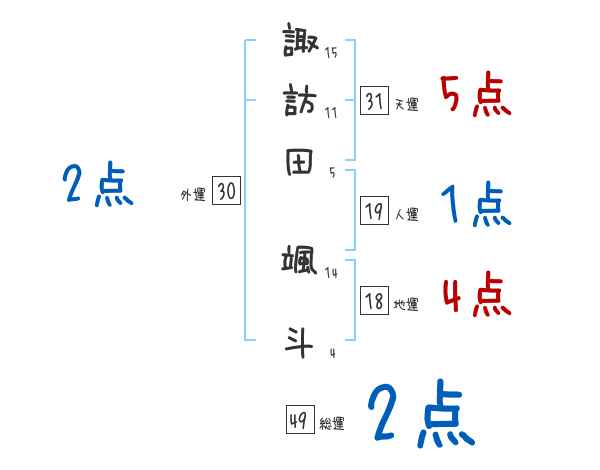 外運![]() | 諏訪田颯斗さんの外運は30画の2つ星!浮き沈みの激しさに注意しましょう。 生活面を象徴する運勢です。外部から受ける影響力を表し、結婚運、家庭運や職場、環境への順応性を表します。 |