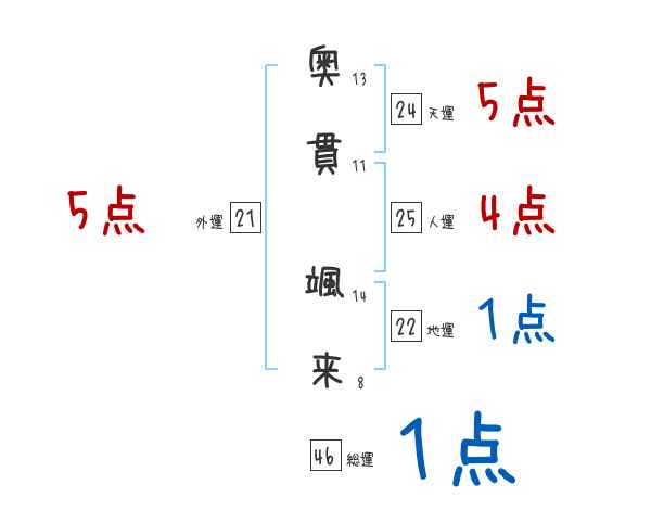 奥貫颯来さんの画数の鑑定結果