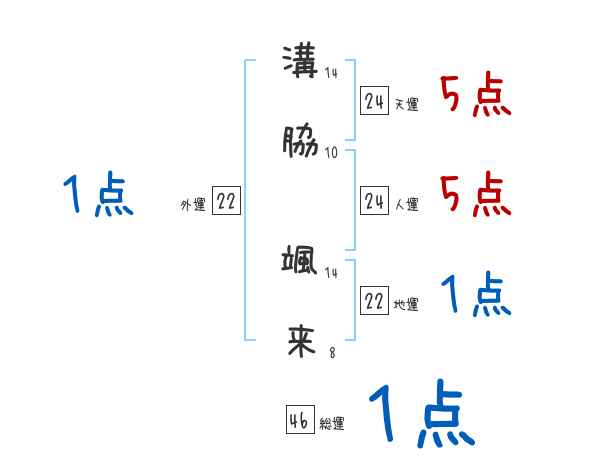 溝脇颯来さんの画数の鑑定結果