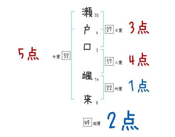瀬戸口颯来さんの画数の鑑定結果