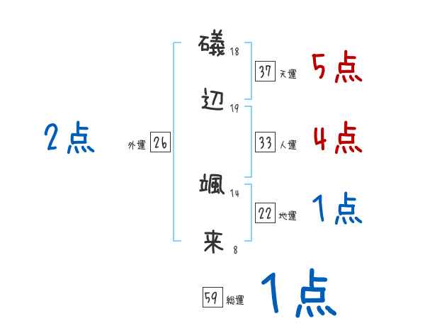 礒辺颯来さんの画数の鑑定結果