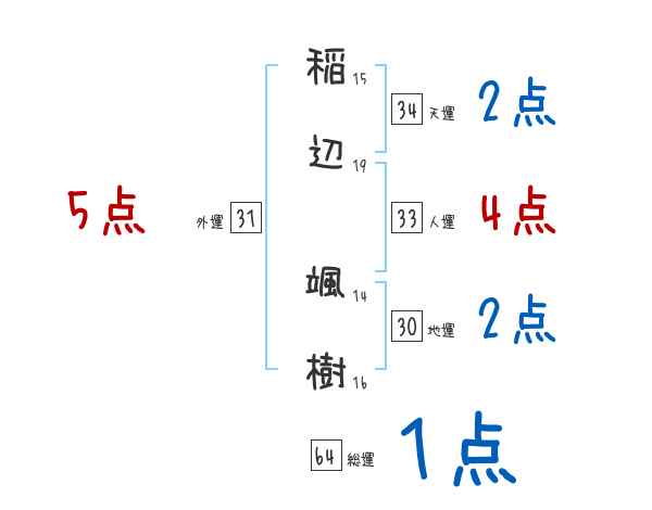 稲辺颯樹さんの画数の鑑定結果