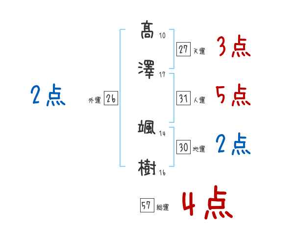 髙澤颯樹さんの画数の鑑定結果