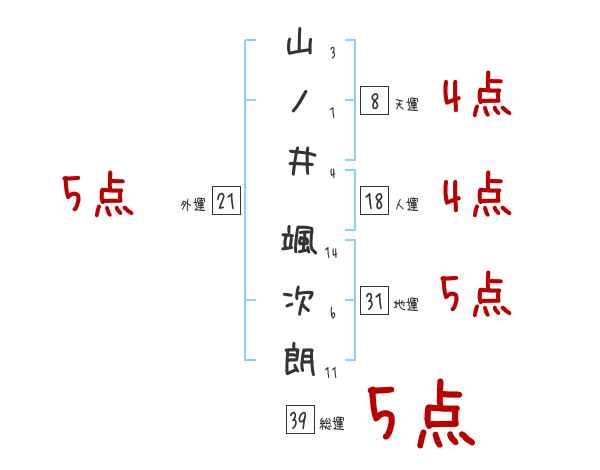山ノ井颯次朗さんの画数の鑑定結果