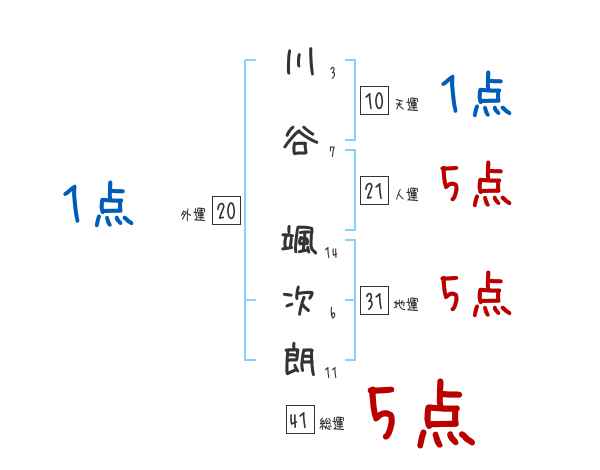 総運![]() | 川谷颯次朗さんの総運は41画の5つ星!大志を抱き、目標に向かって実力を発揮し達成する。温和な性格。 あなたの人生を表す1番重要な運勢です。生涯を通じて影響する総合運となり、主に50歳以降の晩年期に影響を及ぼします。 |