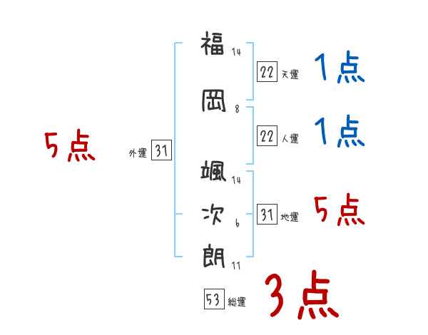 福岡颯次朗さんの画数の鑑定結果
