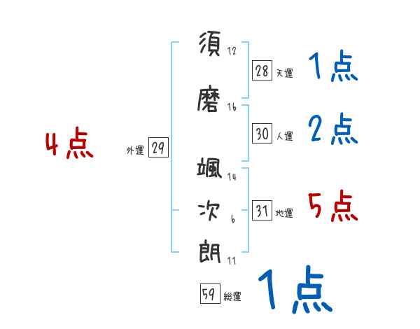 須磨颯次朗さんの画数の鑑定結果