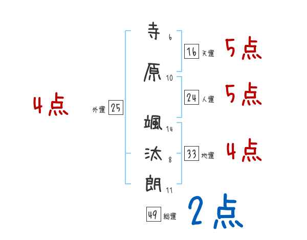 寺原颯汰朗さんの画数の鑑定結果