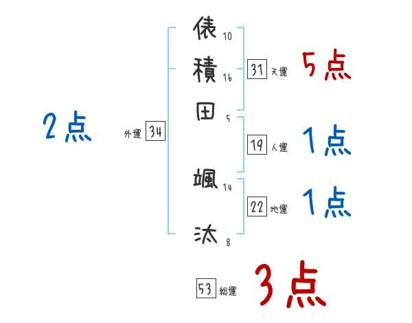 総運![]() | 俵積田颯汰さんの総運は53画の3つ星!やや見栄っ張りで虚栄心がある。散財に注意。 あなたの人生を表す1番重要な運勢です。生涯を通じて影響する総合運となり、主に50歳以降の晩年期に影響を及ぼします。 |